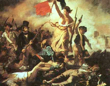 În 1822, când Delacroix s-a prezentat prima dată la Salon cu „Barca lui Dante”, era un artist necunoscut, iar acum, după numai opt ani, era în centrul mișcării artistice franceze. Dar Parisul avea să fie curând aruncat în învălmășeala politică și militară, care a stat la baza celei mai vestite picturi a lui Delacroix. Artistul a trăit în timpuri revoluționare tulburi și această energie și agitație au alimentat cea mai bună pictură a sa. Pe 25 iulie 1830 regele Carol al X-lea a abolit libertatea presei, a dizolvat Camera deputaților și a modificat Legea electorală. Dar poporul din Paris s-a revoltat, ceea ce i-a oferit lui Delacroix subiectul celei mai reprezentative opere: „Libertatea conducând poporul”, o pictură realizată între octombrie și decembrie 1830, într-un impuls de energie creatoare. Tabloul reprezintă un amestec de fapte reale cu ficțiuni. Pentru a afirma că a luat parte la revolta pariziană, pictorul și-a pus semnătura pe o bucată de lemn noduros din partea dreaptă a tabloului, afirmând că el n-a luptat, dar cel puțin poate să picteze pentru țară. Tabloul este foarte riguros construit și bine ordonat, după criteriile pictorului. E ca o piramidă în vârful căreia se află silueta Libertății cu drapelul francez în mâna dreaptă și cu sânii descoperiți, îndemnând masele populare la luptă. Construcția este foarte subtilă, apropiindu-se de clasicism de acestă dată. Pictura a impresionat publicul și pe critici deopotrivă când a fost expusă la Salonul parizian în 1831. Datorită acestei lucrări, Delacroix a primit Legiunea de Onoare, devenind astfel un simbol al Republicii Franceze.